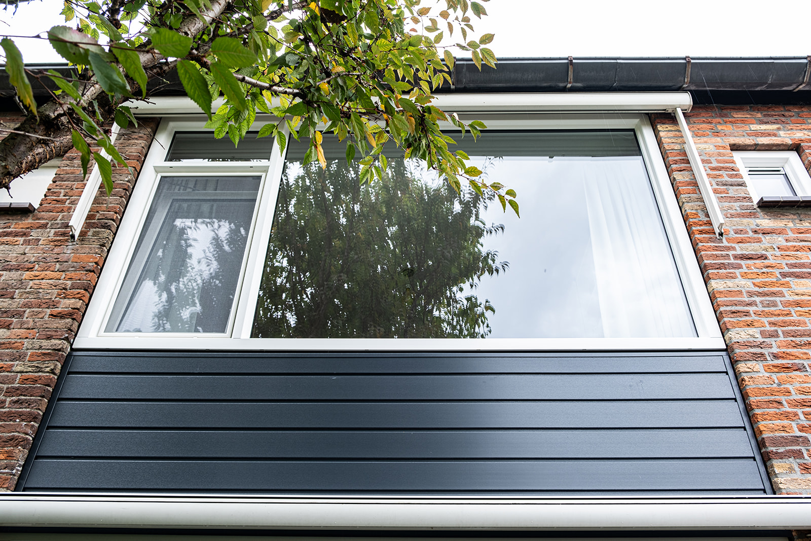 De kunststof ramen hebben de kleur wit RAL 9010 met een houtnerf en zijn voorzien van HR++ isolatieglas. De Keralit gevelbekleding heeft de kleur RAL 7016 antraciet. Een stijlvolle en tijdloze combinatie voor elke woning!